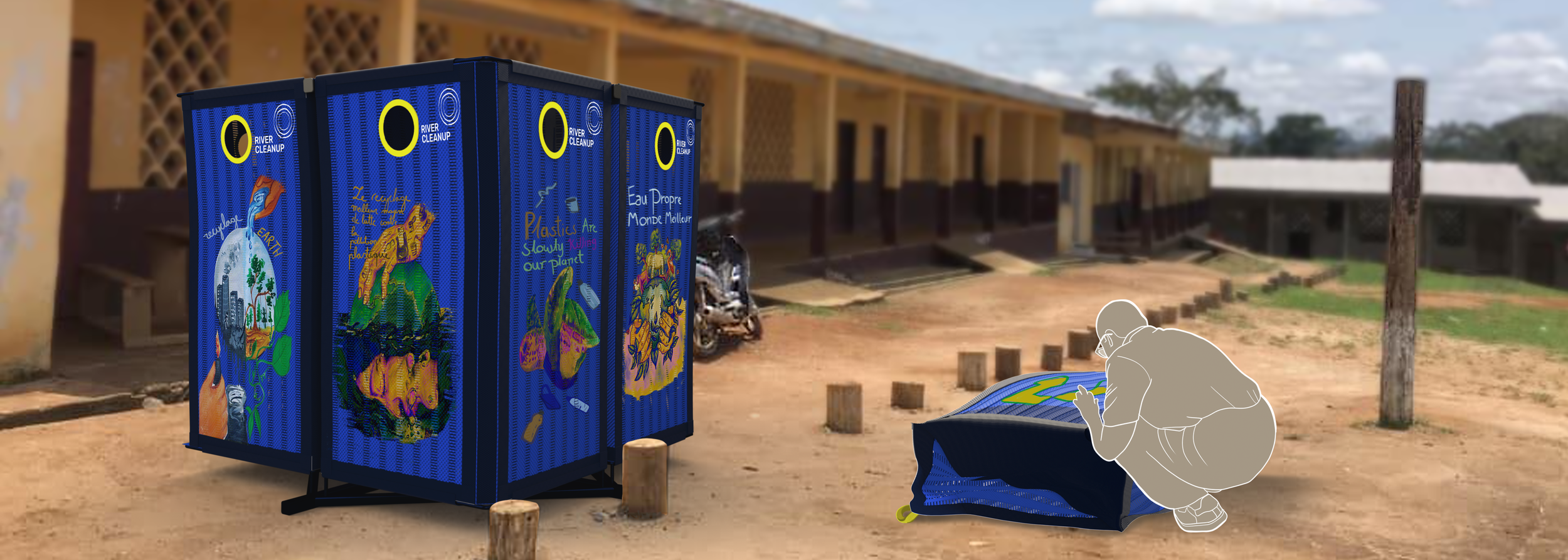 In collaboration with schools in Douala , River Cleanup Cameroon and Belgium, problems with the existing EcoBins, the school program and logistics were identified. Through several design sprints, a concept was developed, a prototype of which was produced locally and tested at a secondary school in Cameroon. This provided insights for a scalable, sustainable and efficient final design for waste collection in schools.